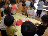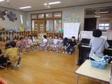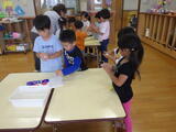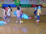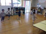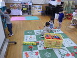 今日から10月です。時折、大粒の雨が降っていて気温も低かったです。室内で運動会ごっこなどをしてたくさん遊びました。