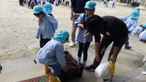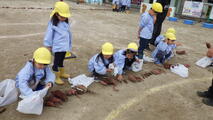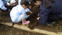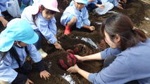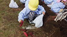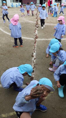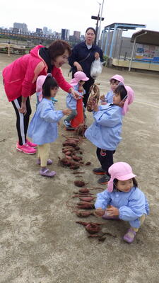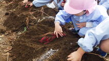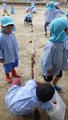 さつまいも掘りをしました🍠 投稿: 園長 (14:51) 10月23日(木) さつまいも掘りをしました。大きくて太いさつまいもがたくさんとれました。一人の力ではなかなか抜けないので友達が手伝って一緒に抜いている様子も見られました。園庭に並べて本数を数えました。全部で200本! -