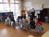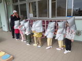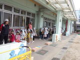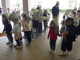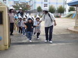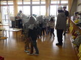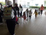 少し時間をおいて台風や大雨に伴う「洪水」を想定した避難訓練を行いました。舟戸幼稚園は2階建てですので、万が一の場合には舟戸小学校の「ひまわりルーム」に避難します。今日は舟戸小学校の昇降口前のピロティに行くところまでを訓練しました。