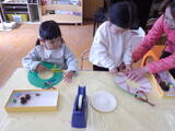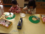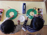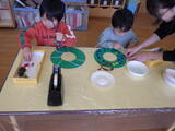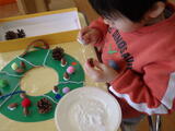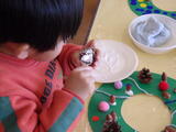 クリスマスリースをつくりました。ボンドの使い方にもだんだん慣れてきました。世界にたった一つのクリスマスリースの出来上がりが今から楽しみです。