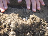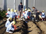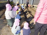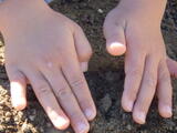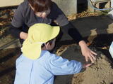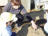 「さやえんどう」の種を蒔きました。そうっと土をかけてあげました。たっぷりお水をあげて、「大きくなあれ!」「おいしくなあれ!」のおまじないをしました。