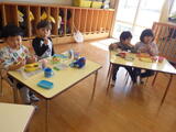 いただきます!🍱 投稿: 園長 (13:00) 1月13日(火) 風がありましたので登園するとすぐに凧揚げをして遊んでいる園児が多かったです。紙でつくったり、ビニール袋でつくったりいろいろな凧が園庭いっぱいにあがっていました。砂場や遊具で遊んだり、ルールのある遊びをしている園児もいました。子どもたちは元気いっぱいです。 夢中になって遊んだのでお腹がぺこぺこです。今日からお弁当持参です。お弁当のふたを開けるとみんな笑顔になりました。「いただきます!」 -