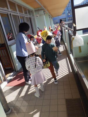鬼は外!福は内! 投稿: 園長 (01/29) 1月29日(木) 2月3日が節分ですが、舟戸幼稚園では豆まきを今日行いました。各クラスで絵本の読み聞かせをしたり、豆まきの話をしました。「鬼は外!福は内!」元気な声が聞こえてきました。 <年少組のアルバム> <年中組のアルバム> <年長組のアルバム> 園庭に鬼があらわれました。さあ、鬼を追い払いに出発! 「鬼は外!福は内!」栄養たっぷりな大豆を投げて鬼を追い払います。 鬼退治、大成功です。 -