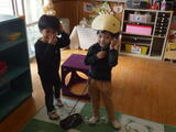 登園すると好きな遊びをし始めます。登園して支度が終わると「入れて!」「いいよ!」の会話で遊びが広がってきます。「外に行く?」「行こう!」「わたしも入れて!」「いいよ!」さらに遊びの輪が広がっていきます。お話ごっこをたくさんしたので劇遊びもしているクラスもありました。