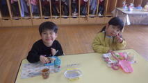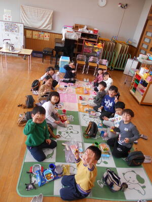 今日は本年度のお弁当最終日です。愛情いっぱい栄養いっぱいのおいしいお弁当を毎日つくっていただきました。ありがとうございました。今日もにこにこ笑顔でお弁当を食べました。空っぽのお弁当を持ち帰りました。