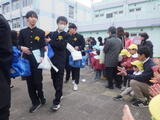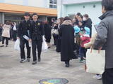 南中学校の卒業証書授与式が終わり、12月に保育実習で来てくれたお兄さんお姉さんに「遊んでくれてありがとう。」「ご卒業おめでとうございます。」をみんなで伝えました。