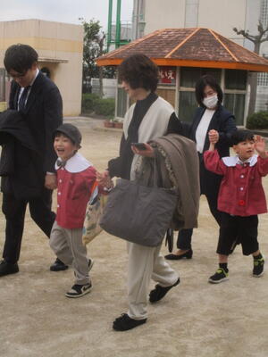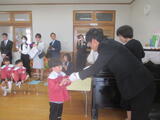 修了証書授与式 ~おめでとうございます~ 投稿: 園長 (14:00) 3月18日(水) 一人一人が立派な態度で修了証書を受け取りました。頼もしい卒園児です。保護者の皆様、地域の皆様にお力添えをいただきましたことに感謝申し上げます。ありがとうございました。 <年長組のお部屋で> <夢の翼広げて 一人一人が飛び立つとき♪> -