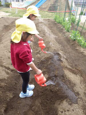 畑の世話をしてくれます。さやえんどうがぐんぐん育っています。