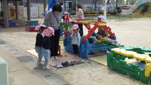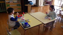 園庭でも遊びました 投稿: 園長 (15:02) 4月13日(月) 心地よい風が吹いています。園庭のこいのぼりも元気に泳いでいます。登園後の支度が終わると好きな遊びに夢中です。 <年長組のアルバム> <年中組のアルバム> <年少組のアルバム> 年長組と年中組は今日からお弁当持参です。「おいしい!」と笑顔で食べていました。 -