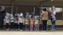 大切な命 投稿: 園長 (12:43) 4月20日(月) 進級して保育室の場所がかわりました。いざというときに大切な命を守れるように年長組の子どもたちは非常用すべり台を使って避難する方法を確認しました。年中組の子どもたちは石の階段を使って避難する方法を確認しました。プールの前で人数を数え、全員の無事を確認しました。年少組の子どもたちもその様子をじっくり見ていました。 -