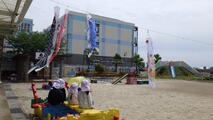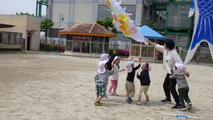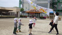年長組の子どもたちのこいのぼりが仲間入りしました。年中組や年少組の子どもたちの歌や応援で元気に泳ぎ始めました。