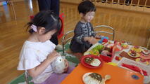 遊びに夢中です! 投稿: 園長 (15:17) 4月28日(火) 昨日は雨が降ったので園庭で遊ぶことはできませんでしたが、夕方には虹が出ていました。ご覧になりましたか?今日は午前中から園庭でアスレチックをつくって夢中で遊びました。鬼ごっこをするのも大好きです。 <年長組・年中組のアルバム> <年少組のアルバム> -