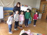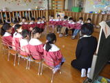 【終業式】園長先生の話を静かに最後まで聞くことができました。①「早寝・早起き・朝ごはん」を守りましょう②あいさつをしましょう③交通事故にあわないように気をつけましょうの3つの約束を園長先生としました。一人一人が守って1月8日の始業式に元気に登園してください。