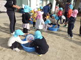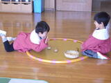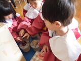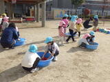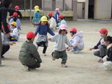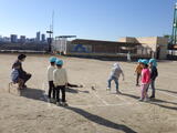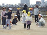 昨日に比べると穏やかな天気で気温も上がってきましたので園庭で体を動かして遊んだり、お部屋で正月遊びをしました。