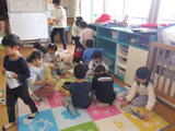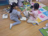 今日もお部屋をピッカピカにします。おもちゃもかごから出してきれいに入れます。年長組の子どもたちは遊戯室やコンテナ、絵本の広場もピッカピカにしてくれました。