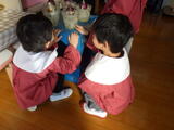 <年長組のアルバム>科学館から指導者をお招きし、科学出張教室を行いました。経験してきたことや生活の中の身近な現象から結果を予想します。結果を知って不思議に思ったようです。「なぜだろう?」から関心が高まります。